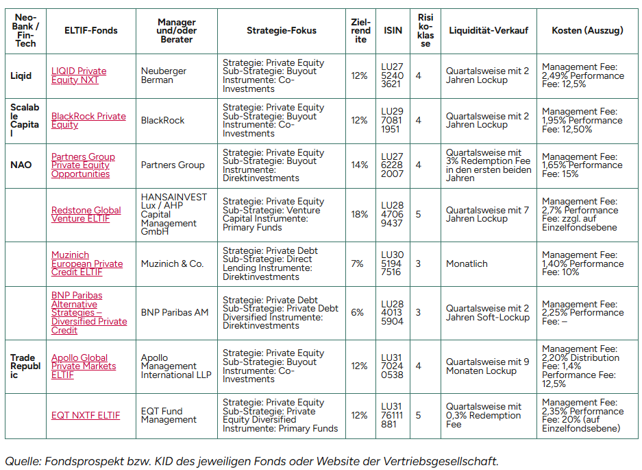 Ein Überblick über Private Market Anlageklassen und die konkreten ELTIF-Fonds